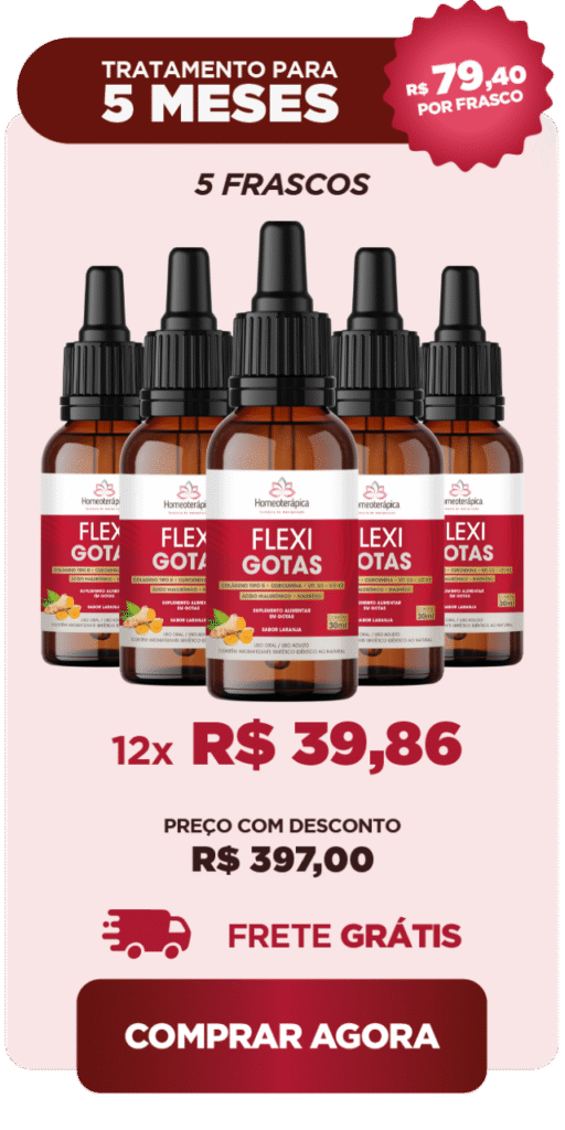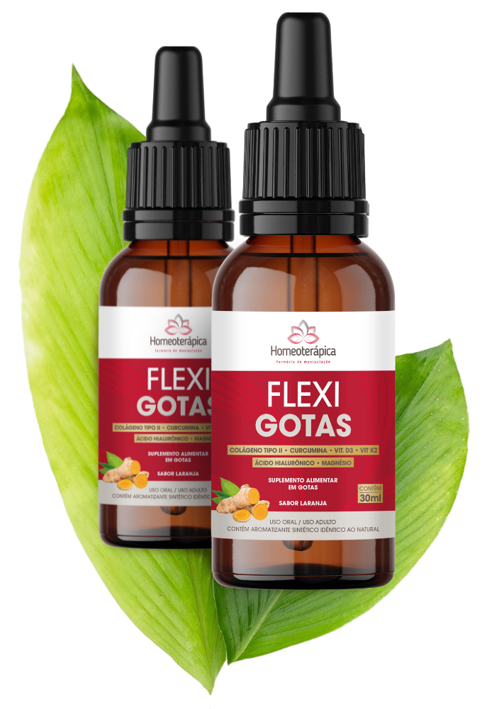 Elaborado sob os preceitos da Homeoterápica Farmácia de Manipulação, FlexiGotas tem ação sinérgica, a qual implica em cada um dos seus componentes potencializar a ação dos outros, agindo diretamente na causa das dores articulares, estimulando a regeneração do tecido cartilaginoso, lubrificando e protegendo as articulações, reduzindo a inflamação e a dor.